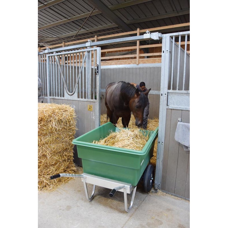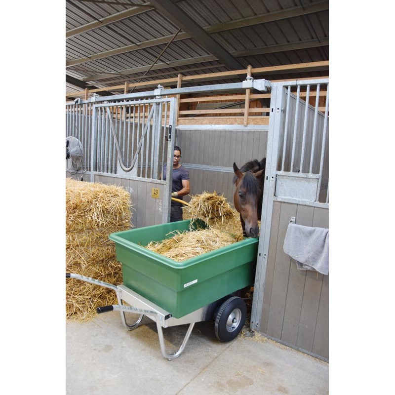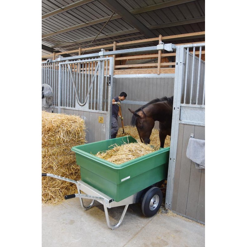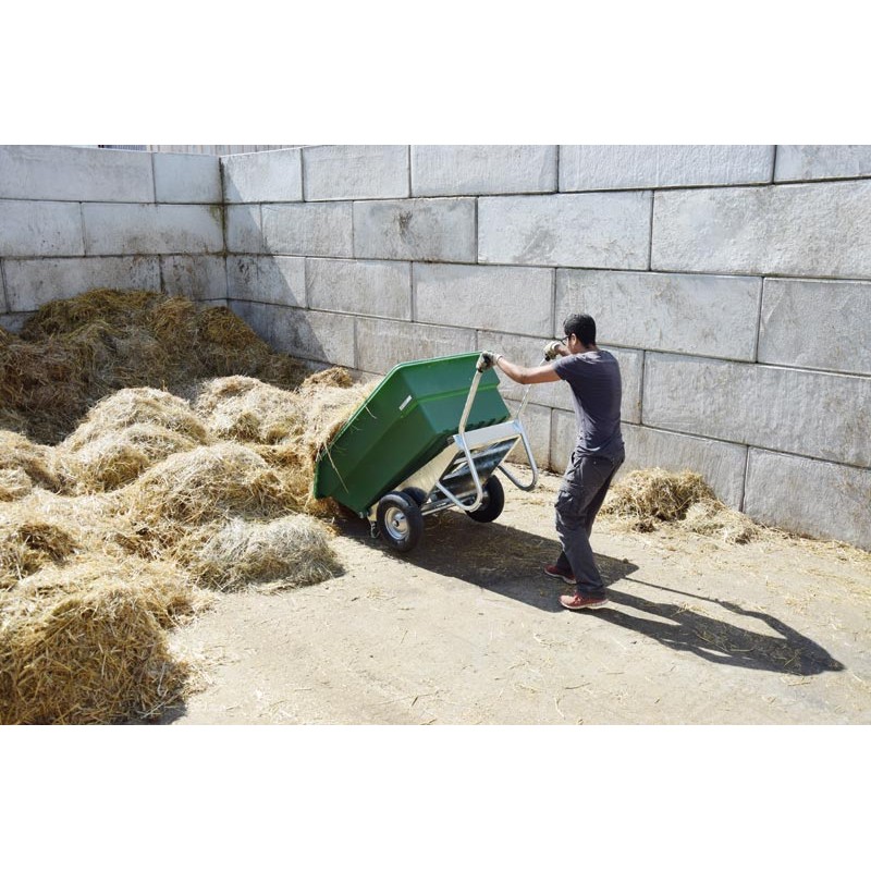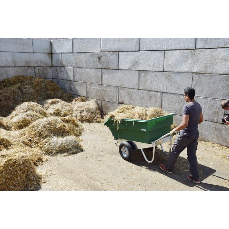 Ces brouettes sont conçues à partir d’un châssis galvanisé à basculement intégral et d’une cuve en résine de polyéthylène stabilisé aux UV et au gel. Equipées de roues de 400 x 8 - 4 plys gonflables sur roulement à rouleaux graissés avec épaulement de 80 mm, jantes métalliques (hors modèle 200 L).