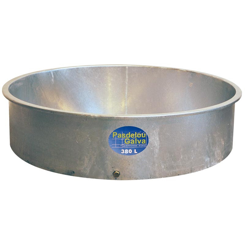 Bacs de pâturage, fabriqués en tôle d’épaisseur 20/10ème, galvanisés à chaud avec rebord extérieur retombant et bouchon de vidange Ø 15/21 mm