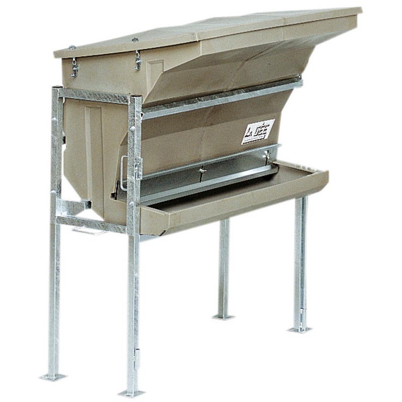 - 1 nourrisseur avec réserve de 500 L sur pieds. Muni d'une trappe de réglage du débit.