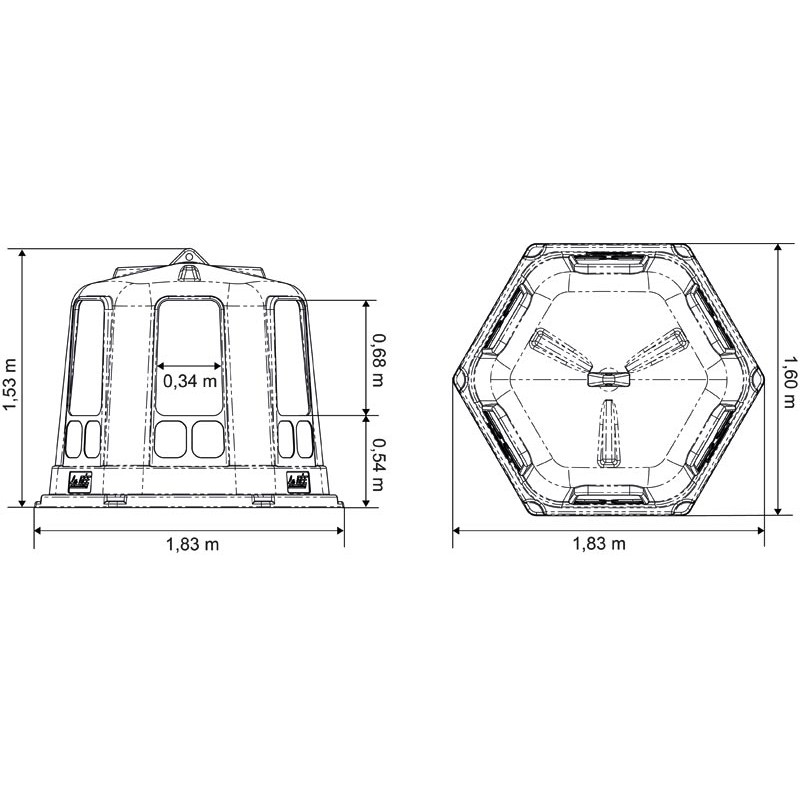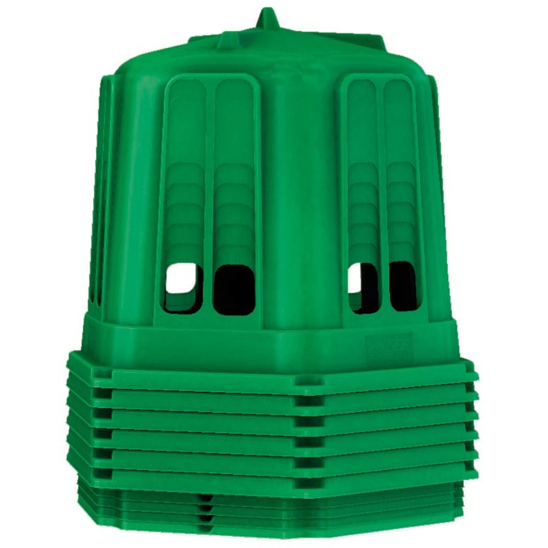 Ces râteliers de forme hexagonale en résine de polyéthylène, sont stabilisés aux UV et résistants au gel, robustes et légers, ils sont faciles à manipuler à la main ou par engin mécanisé. Ils disposent de 6 passages de tête avec gouttière, évitant le ruissellement de l’eau vers l’intérieur.