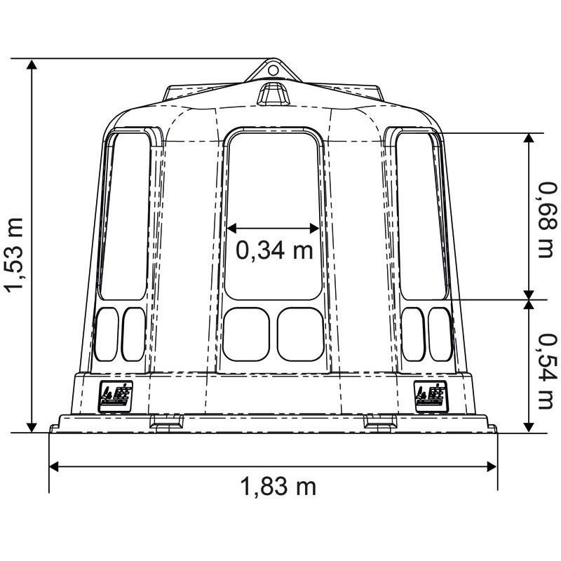 - Passage de tête renforcé par un rebord en polyéthylène non blessant, agissant comme une gouttière.
