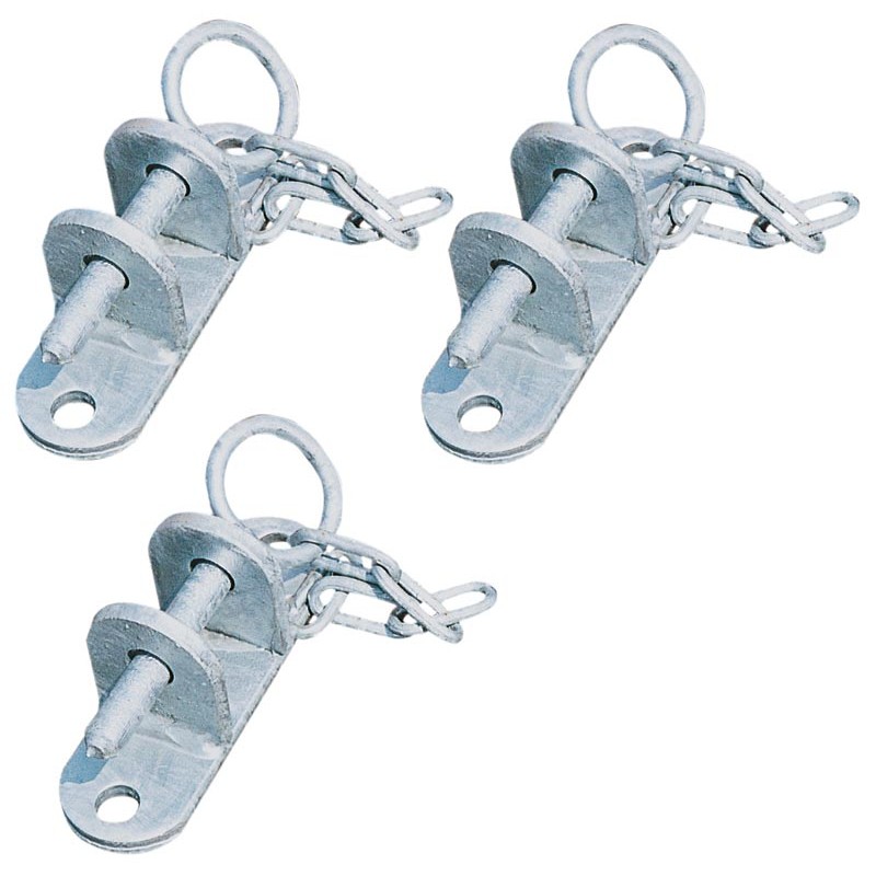 Fixation éco comprenant 3 chapes avec piton à chaînette Ø 14 mm (dans ce cas caler la chape de fixation du bas pour compenser les différences de Ø de 14 à 18 mm afin de garder la barrière de niveau)