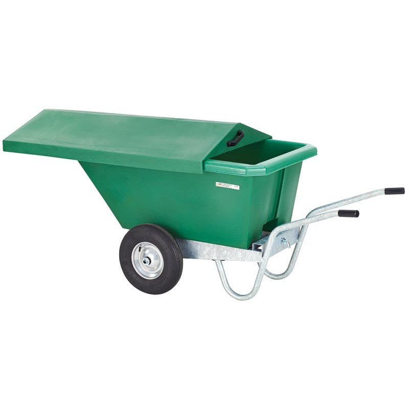 Cette brouette à aliments avec cuve basculante, châssis galvanisé et couvercle à glissière d’origine est un outil idéal et polyvalent pour le transport d’aliments avec ou sans compartiment, même dans les terrains difficiles. Elle est équipée d’un mécanisme anti-basculement de cuve.