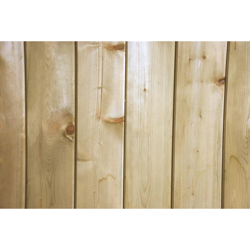 Les panneaux d’habillage sous toiture des pignons et de l’arrière sont fournis en bois traité, bruts et découpés, prêts à être posés et lasurés. Ils sont fabriqués en contreplaqué okoumé 10 mm d’épaisseur, qualité extérieure pour résister aux intempéries, finition rainurée façon lambris pour plus d’esthétique. Ils se fixent sur les fermes et cadres métalliques galvanisés par vis auto perceuses Ø 6,3 mm. Les poteaux utilisés pour l’assemblage sont fabriqués en rectangle 50 x 100 mm, ép. 2,5 mm, prépercés en usine. Les boulons pour l’assemblage des éléments sont à tête bombée non blessante évitant ainsi toute partie saillante. Les madriers 175 x 65 mm, en sapin traité, sont solidement fixés sur les fermes galvanisées par 4 boulons bois à tête bombée non blessante. Les fermes métalliques sont directement emboîtées dans les poteaux et boulonnées formant un ensemble, avec les façades et cloisons, parfaitement solidaire. La conception de la ferme intermédiaire permet de libérer le passage sous auvent. De plus, ces parties saillantes sont arrondies pour éviter tout risque de blessure.
