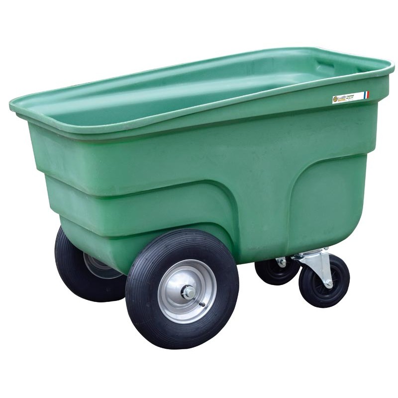 - de 2 roues pivotantes Ø 200 mm en plus des roues fixes avant Ø 400x8 mm gonflables avec jante métallique, leur assurant une grande stabilité.