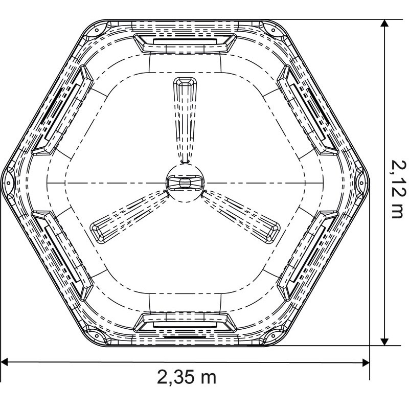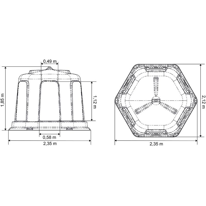 En résine de polyéthylène rotomoulée stabilisée aux U.V. et au gel.