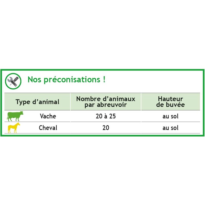 L'abreuvoir POLYBAC S est à poser au sol, il est profond et étroit pour limiter son encombrement dans les passages d'animaux.