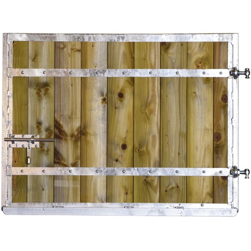 Pose sans huisserie : prévoir 1 gâche pour verrou d'écurie (P1235704) et 1 paire de gonds (P1235701 ou P1235702).