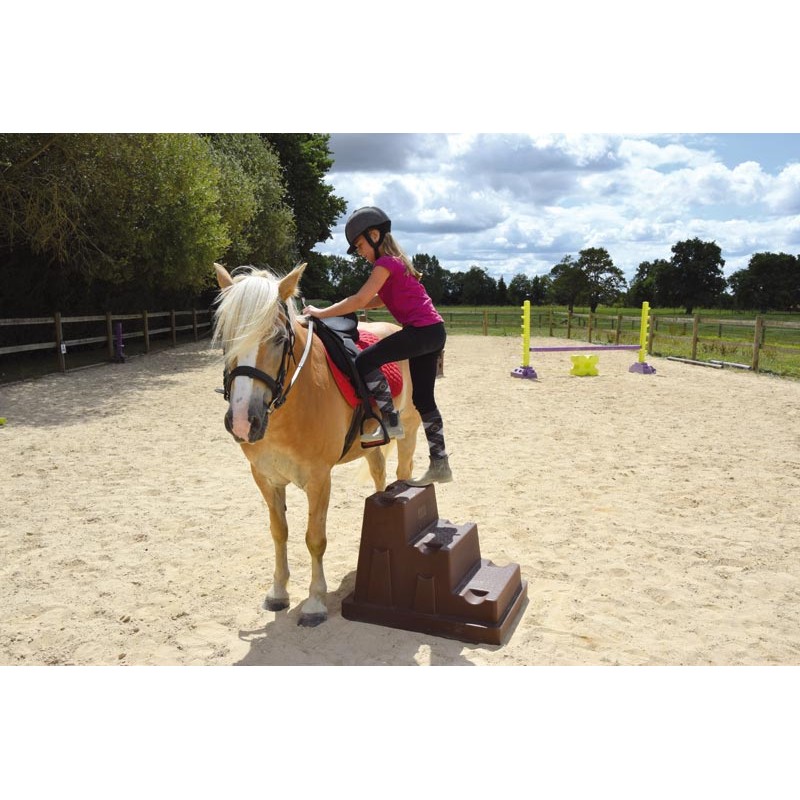 Il peut s'utiliser comme un cavaletti support de barres d'obstacles ou bien de marche-pied pour faciliter l'accès à sa monture.