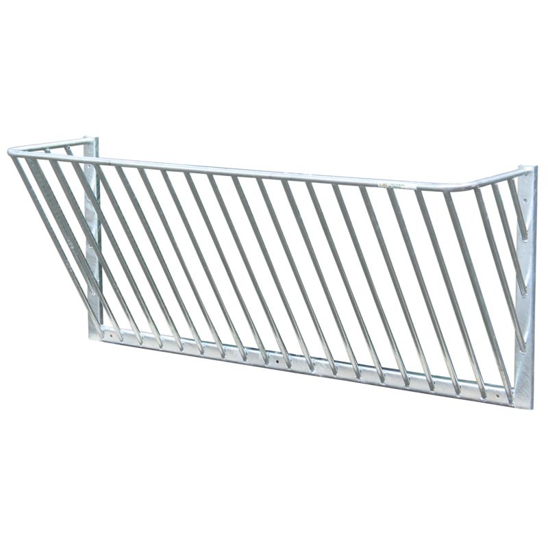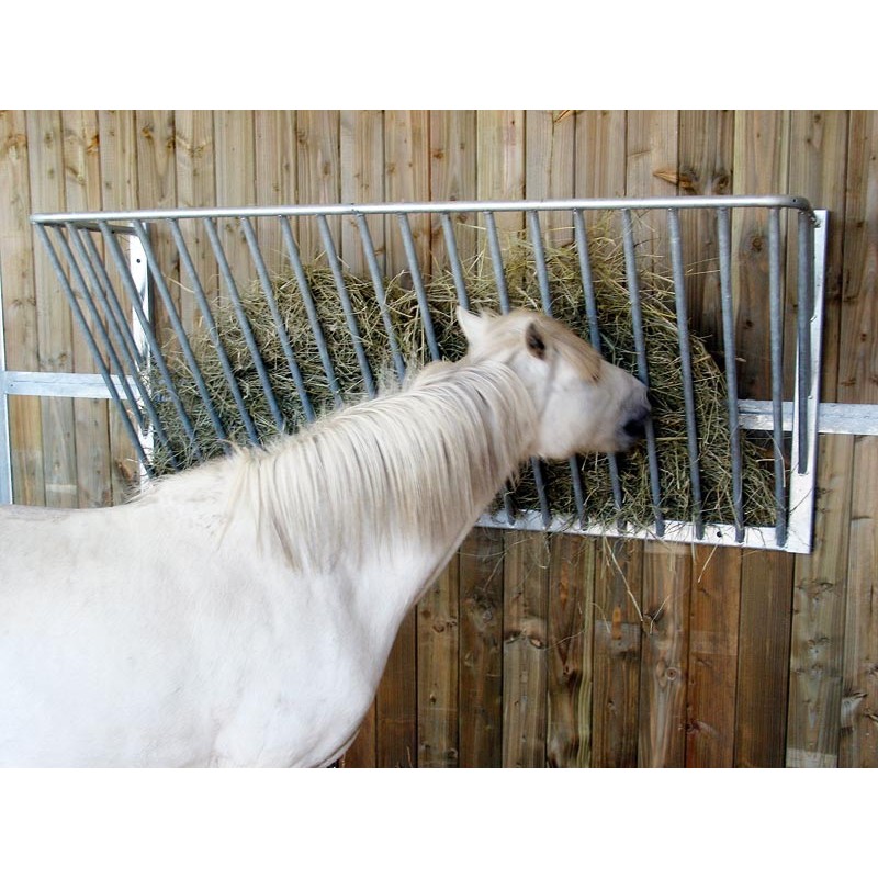 Ces râteliers métalliques sont galvanisés à chaud après fabrication. Leurs tubes verticaux sont manchonnés dans leur cadre. Ils sont extrêmement robustes et offrent un espacement entre barreaux de 80 mm facilitant ainsi l’extraction du foin.