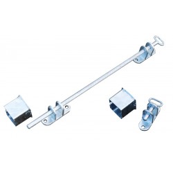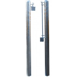 Fixation par le biais de plat soudé sur le montant principal. Plaque au format A4, soudée sur la poutre principale servant de support à la fixation de différents panneaux homologués du commerce (propriété privée, chasse gardée,...).Partie télescopique Ø 60 mm permettant d’allonger la barrière de plus ou moins 2 m tout en gardant un croisement nécessaire à la jonction.