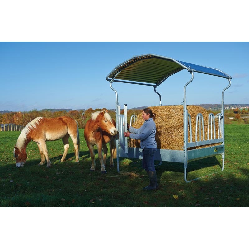 Grâce à leur équipement de patin de type ski, ils peuvent aisément être déplacés dans la prairie, permettant ainsi de déplacer les points d’affouragement avant une trop grande dégradation du terrain. Toit constitué de tôle galvanisée pour prendre une forme arrondie afin de mieux protéger de la pluie et favoriser ainsi l'écoulement de l'eau.