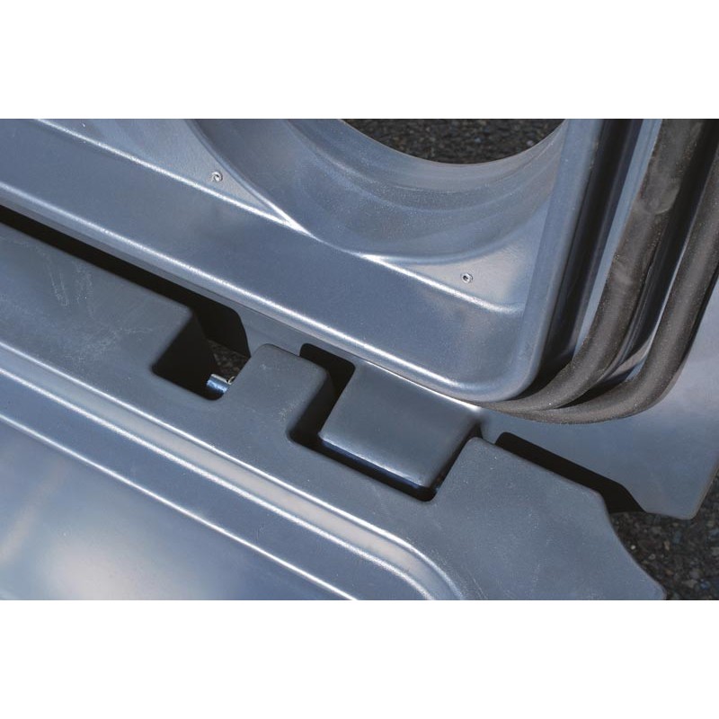 Le couvercle est aisé à manipuler par molettes et à maintenir en position ouverte grâce à ses charnières arrière. La cuve est pourvue de deux bondes de vidanges latérales et d'une centrale si le support est adapté, pour une meilleure efficacité.