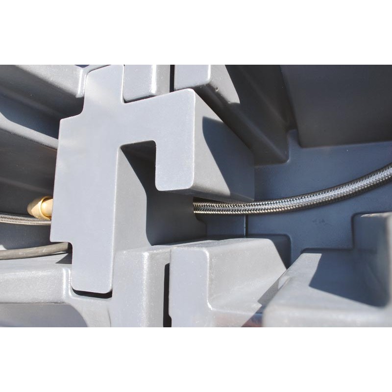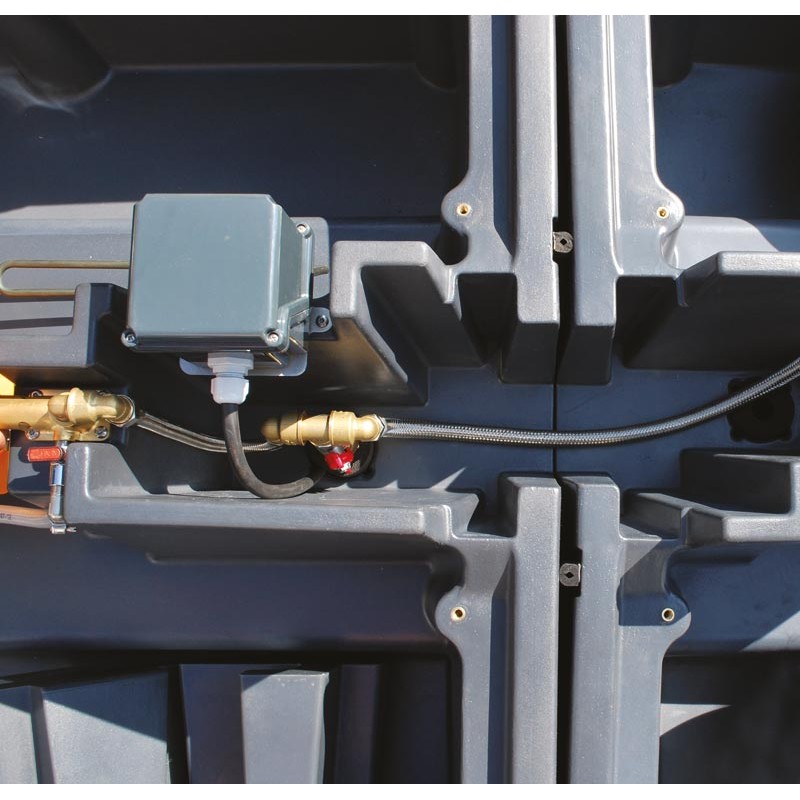 Dans sa version d'origine, il est efficace jusqu'à -30° et sur des températures plus basses avec l'option thermoplongeur. Un local technique interne permet un raccordement à l'eau avec aisance et l'ajout de l'option chauffante et d'une vanne de coupure générale. Une clé de blocage isotherme orientable permet le passage des réseaux, le raccordement et la liaison de deux bacs ainsi couplés entre eux, tout en conservant les performances thermiques.