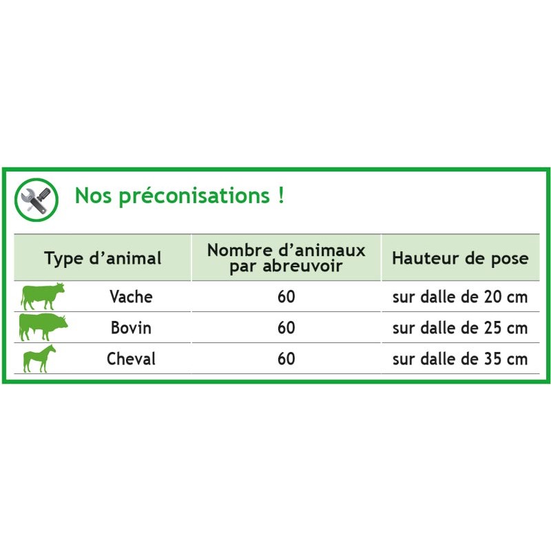 Abreuvoir isotherme de grande contenance conçu à partir d'un bac en polyéthylène rotomoulé en double paroi isolée par une mousse polyuréthane, d'un couvercle isotherme à double joint et d'une boule isolée ou d'une coupelle.