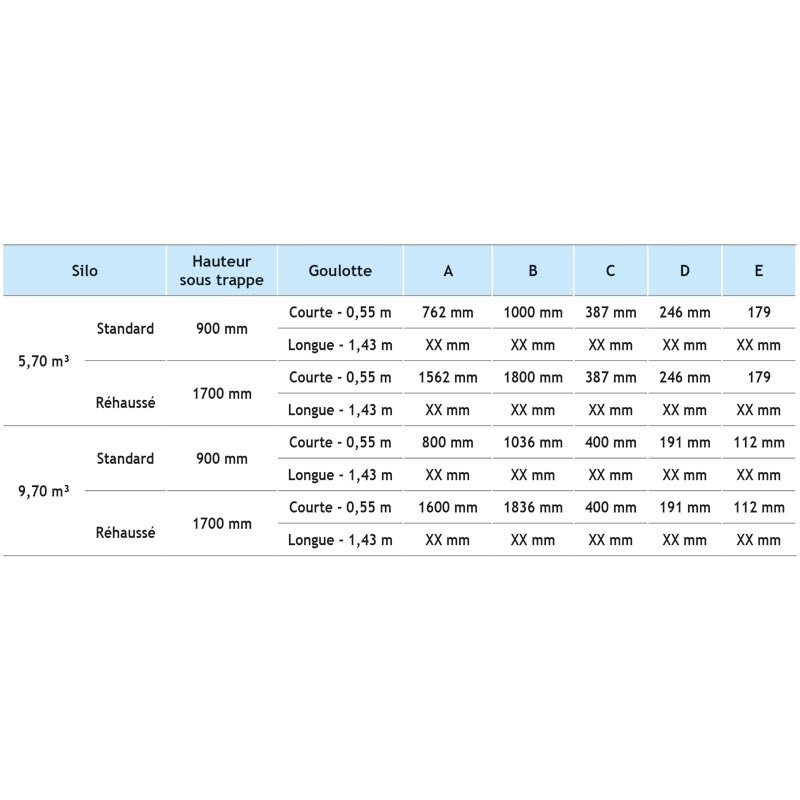 Ces silos sont prévus pour le stockage intérieur et extérieur des aliments (densité 0,8 maximum).