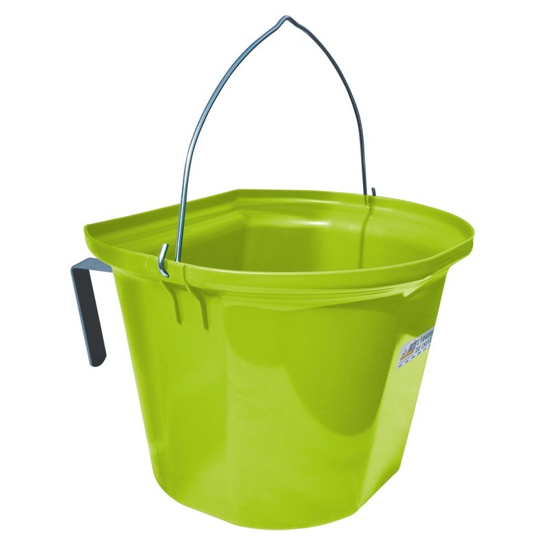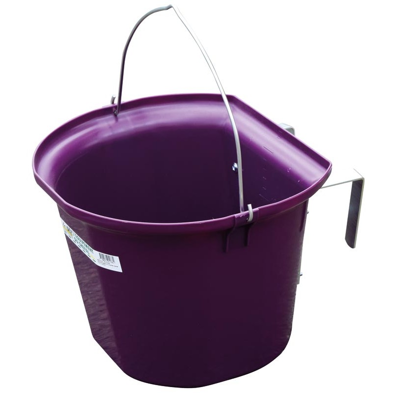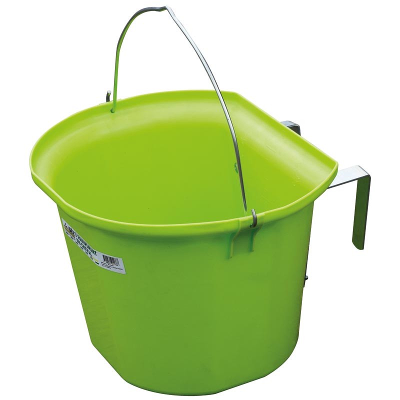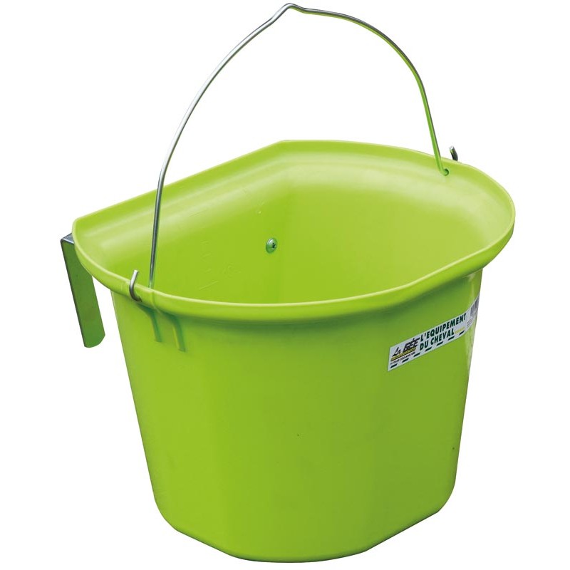 Vous permet de transporter facilement la ration de votre cheval grâce à l'anse intégrée et de poser la mangeoire avec les 2 crochets positionnés à l'arrière.