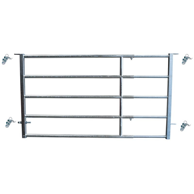 Ce panneau tubulaire extensible de 5 lisses de Ø 42 mm, permet de barrer la partie avant de l'extension d'abri SP de 2,09 m afin de bloquer l'accès aux animaux et créer une porte pour l’approvisionnement du fourrage.