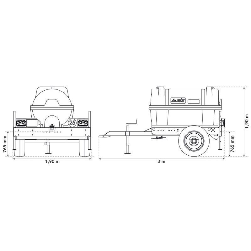 Caractéristiques techniques des citernes à freinage double ligne à partir du modèle 2300 litres :