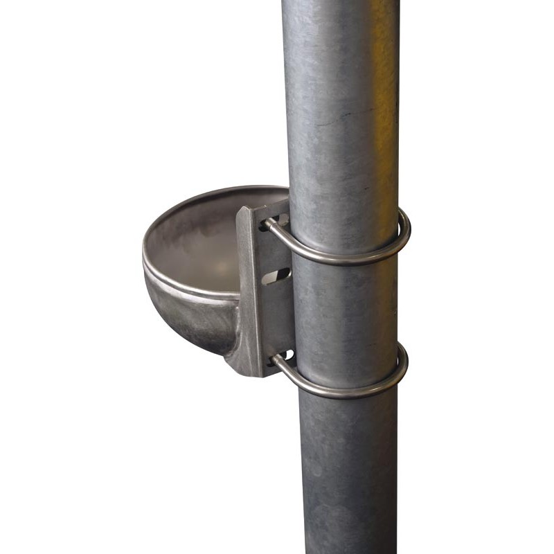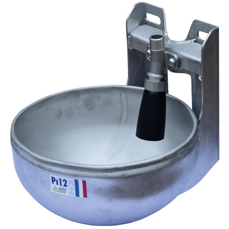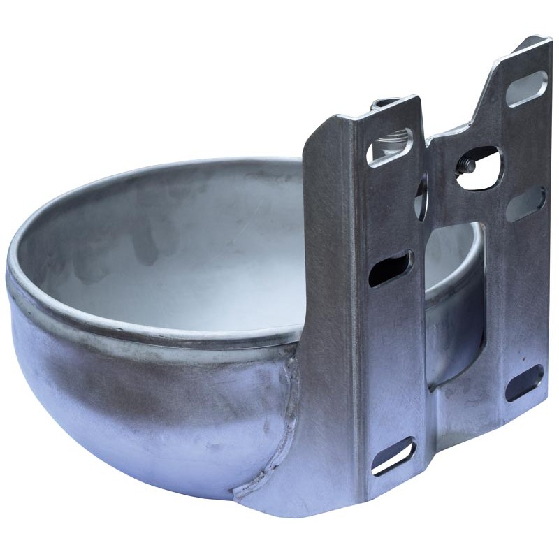 Abreuvoir monobloc tout inox, bol simple avec rebord incurvé limitant les éclaboussures. Platine murale inox de fixation avec trous oblongs. Peuvent se fixer directement sur un poteau métallique sans bride spécifique.