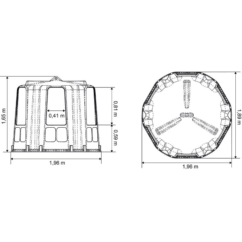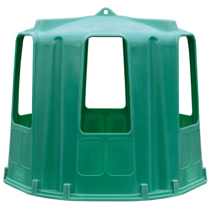 Ces râteliers de forme hexagonale en résine de polyéthylène, sont stabilisés aux UV et résistants au gel, robustes et légers, ils sont faciles à manipuler à la main ou par engin mécanisé. Ils disposent de 6 passages de tête avec gouttière, évitant le ruissellement de l’eau vers l’intérieur.