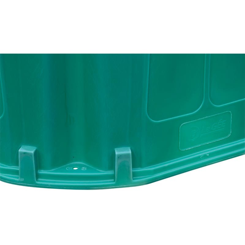 Lors du remplissage des RPE avec fond, la cloche est soulevée et le fond reste au sol. Ils sont percés de 6 trous de fixations permettant l'ancrage au sol du râtelier par des pitons et évitant son déplacement lors de l'alimentation des animaux. Leurs parties supérieures sont équipées d’un anneau de levage de diamètre 40 mm et de formes de renfort. Les fonds et les passages sont prévus avec écoulement d’eau. Passage de tête renforcé par un rebord en polyéthylène non blessant. Ils sont très sécurisants pour les troupeaux.