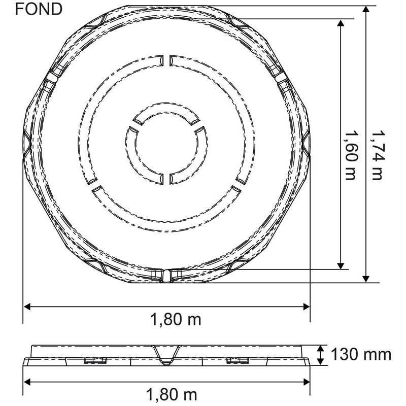 Lors du remplissage des RPE avec fond, la cloche est soulevée et le fond reste au sol. Ils sont percés de 6 trous de fixations permettant l'ancrage au sol du râtelier par des pitons et évitant son déplacement lors de l'alimentation des animaux. Leurs parties supérieures sont équipées d’un anneau de levage de diamètre 40 mm et de formes de renfort. Les fonds et les passages sont prévus avec écoulement d’eau. Passage de tête renforcé par un rebord en polyéthylène non blessant. Ils sont très sécurisants pour les troupeaux.