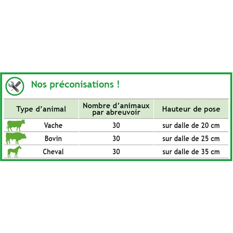 Il est indispensable d’installer le Polytherme sur une dalle en béton d’au moins 20 à 35 cm de hauteur selon le type d'animal, dépassant de 5 à 10 cm tout autour de l’abreuvoir.