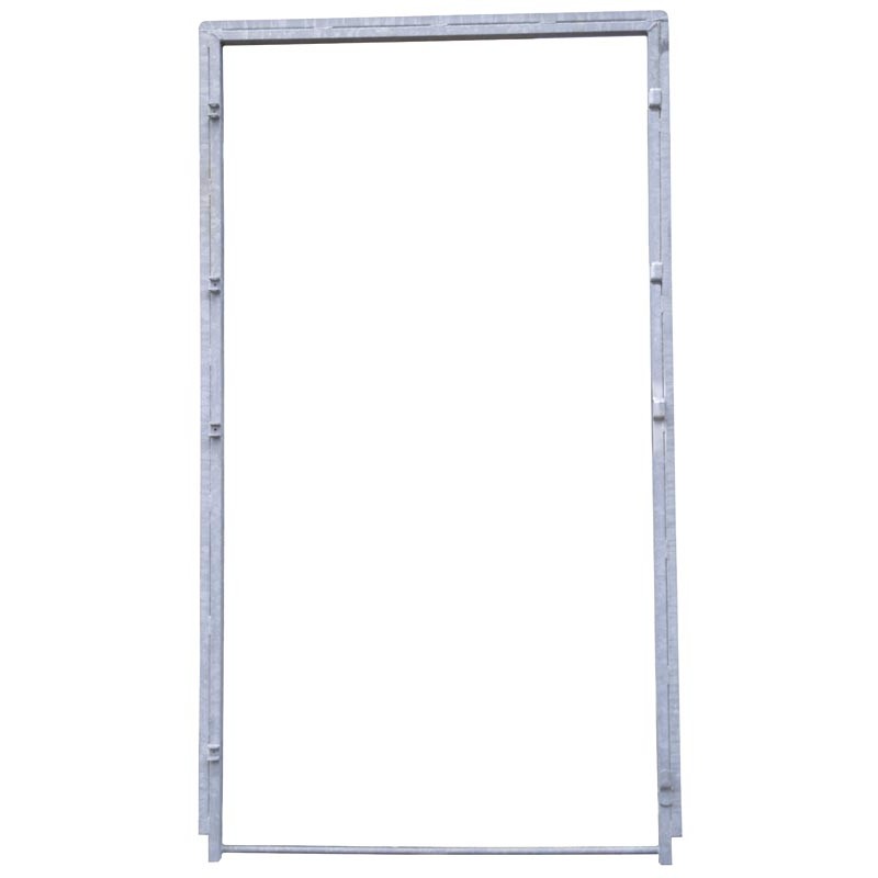 L'huisserie dépasse de 7,5 cm au bas pour une fixation par scellement au sol.
