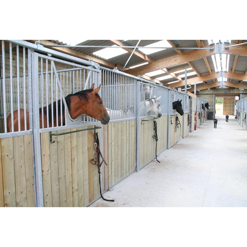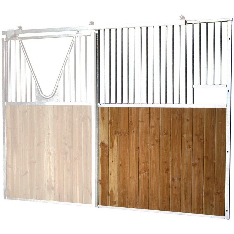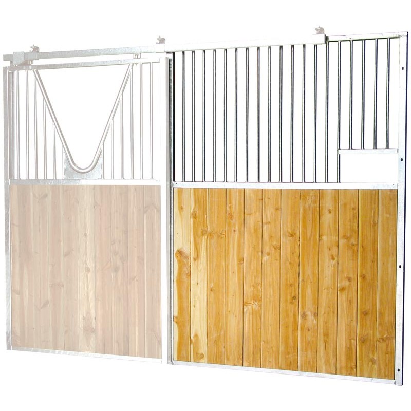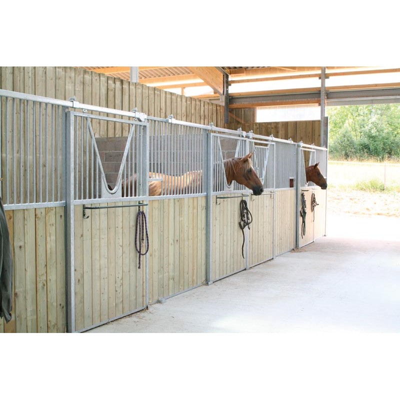 Partie haute barreaudée avec passage à nourriture intégré. Le barreaudage Ø 21,3 mm est soudé avec un espacement de 60 mm maximum, ce qui correspond aux normes des Haras Nationaux.