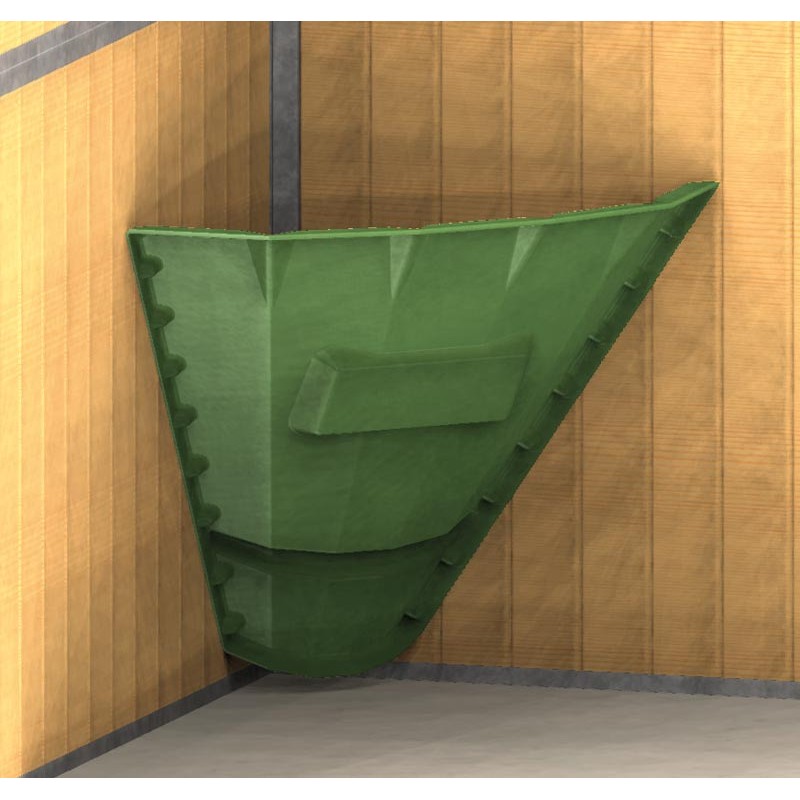Ce râtelier d’angle en résine s’adapte parfaitement pour une pose en angle de mur dans les boxes.
