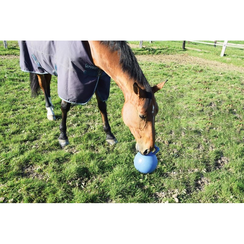Non blessante, elle permet grâce à sa poignée moulée dans la masse, d’offrir aux équidés une partie préhensible leur permettant de transporter et de lancer la Fun Ball.