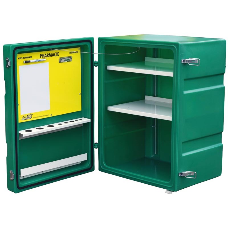 Cette pharmacie est adaptée aux locaux d’élevage, elle contribue au respect des normes européennes d’hygiène.