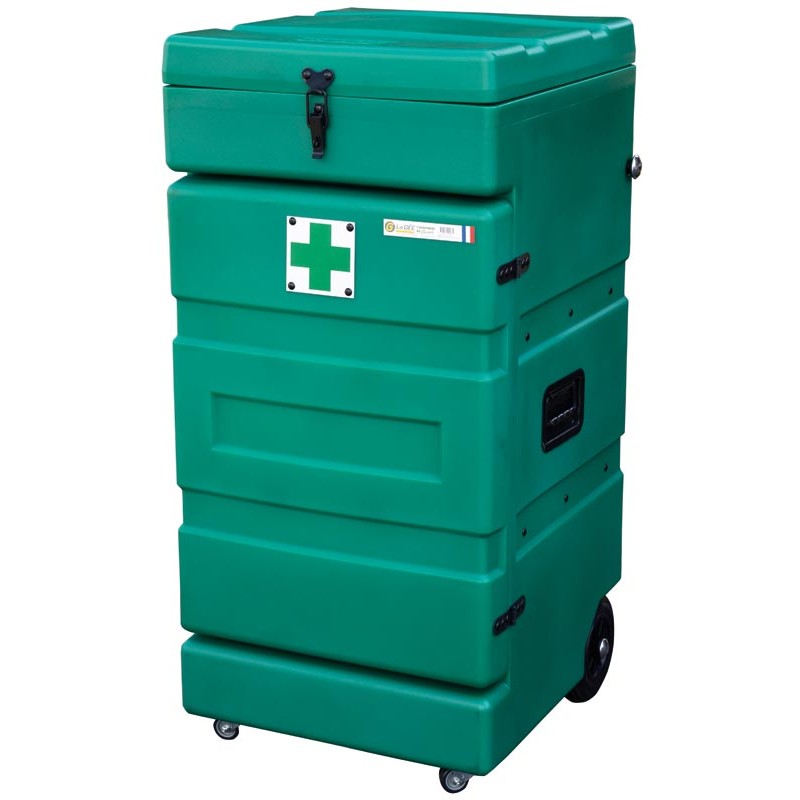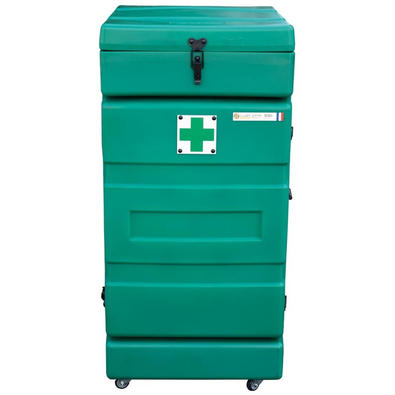 La pharmacie mobile permet de ranger tous les accessoires de soins pour les animaux ainsi que les fiches de suivis.