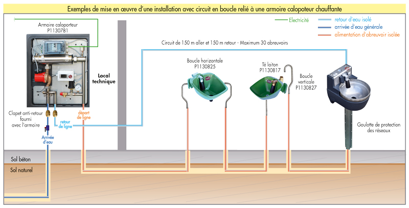 L’installation est la même que pour l’abreuvoir-polyspring-II, il faudra bien penser à isoler la tuyauterie remontante vers l’abreuvoir pour ne pas que ça gel !!!